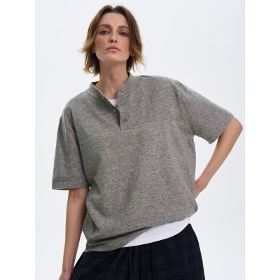 ハイエンドのクリーンフィット半袖Tシャツメンズカジュアルレトロヘンリーカラーニットトップスイン