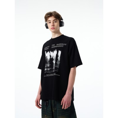レトロなハイストリートの古いウォッシュプリントTシャツ、男女兼用、ゆったりとしたハンサムなヴィンテージデザインの半袖